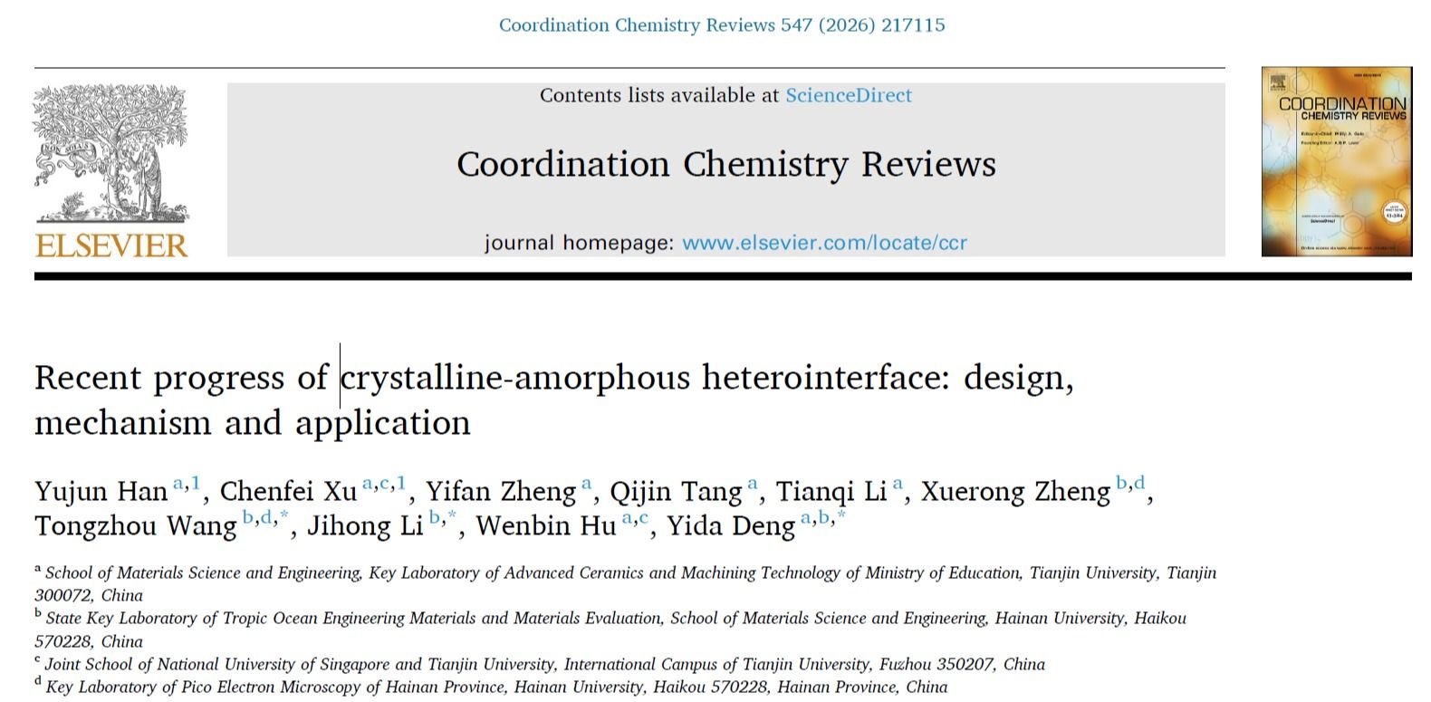 近日,材料科学与工程学院邓意达教授团队在材料领域Top期刊Coordination Chemistry Reviews上发表题为“Recent progress of crystalline-amorphous heterointerface: design, mechanism and application”的综述论文。该文系统总结了晶态–非晶态(C-A)异质界面的设计策略、性能提升机制以及在电催化和电池等领域的应用进展。C-A异质界面将晶态材料的有序结构与非晶态材料的无序特性有机结合,形成独特的“有序–无序”协同效应:晶态部分提供优良的电子传输通道与力学稳定性,...