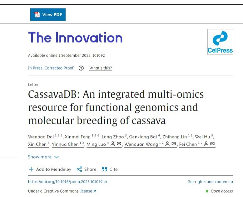 近日,海南大学南繁学院(三亚南繁研究院)硕士研究生以海南大学为第一署名单位在中科院一区TOP期刊《The Innovation》发表题为“CassavaDB: An integrated multi-omics resource for functional genomics and molecular breeding of cassava”的研究论文。该研究建立了首个木薯为主题的综合性大数据平台,为重要粮食作物木薯遗传育种提供了一站式在线多组学分析和分子设计育种平台,助力海南热带高效农业和国家南繁育种。 木薯(学名:...